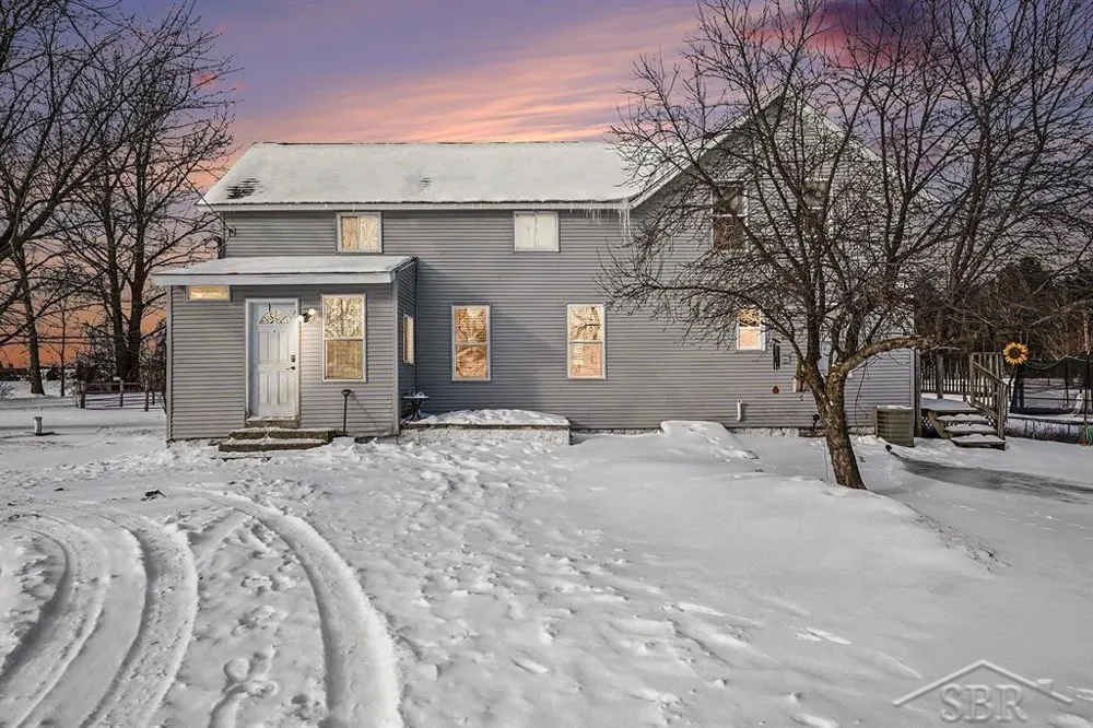 Tucked away on 5 scenic acres just outside of West Branch, this spacious farmhouse offers a rare opportunity to own acreage, outbuildings, and generous living space at an approachable price point. Located near the gateway to Up North, the setting provides peaceful privacy and open space while remaining conveniently close to town amenities. A substantial 32x90 pole barn anchors the property, offering exceptional storage and workspace potential. Recent exterior improvements include a newer roof, updated windows, updated landscaping, an expansive lawn, and a newly fenced pasture, enhancing both the beauty and functionality of the property. Inside, the home has been completely refreshed with all-new interior paint, new flooring throughout, updated light fixtures and ceiling fans, creating a bright, move-in-ready feel. Additional major updates include a new furnace and new central air, providing comfort and efficiency year-round. The home features large, flexible living areas and a fantastic floor plan ideal for everyday living and entertaining. The oversized kitchen and adjoining dining room serve as the heart of the home, while the main level also includes a spacious living room, primary bedroom, and convenient main-floor laundry. Upstairs, you'll find three generously sized bedrooms, offering plenty of space for family or guests. The main bathroom features a tiled soaking tub and generous square footage, creating the perfect private retreat. With an exceptional combination of land, substantial outbuilding, extensive updates, and proximity to town, this property is a standout opportunity. Acreage with this level of improvement and convenience is increasingly hard to find-don't miss your chance to make it yours.