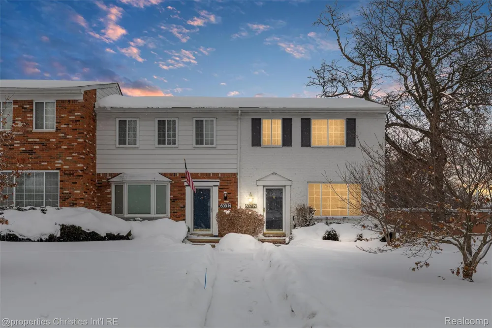 Welcome to this move-in-ready, spacious end-unit two-story townhome located in the highly sought-after Fox Hills Condominium community. Step inside to a bright, inviting layout featuring fresh paint throughout, along with brand-new carpeting upstairs and in the finished basement. Hardwood floors anchor the open living and dining area, creating a convenient and versatile space ideal for both everyday living and entertaining. The charming eat-in kitchen is equipped with stainless steel appliances, mosaic-style ceramic flooring, and stylishly painted cabinetry with brass-toned hardware, offering a welcoming setting for casual meals or your next culinary creation. The main level is completed by a convenient half bath. Upstairs, you’ll find two generously sized bedrooms, including a primary suite with a large walk-in closet and mirrored vanity area, along with a fully renovated, stylish full bath. (hardwood floors continue beneath the upstairs carpeting.) The partially finished basement adds valuable flexibility—perfect for a home office, media lounge, or recreation space—and includes a spacious storage room with laundry. Additional highlights include one assigned covered carport space and ample unassigned guest parking. Residents enjoy resort-style amenities such as a community pool, tennis courts, and clubhouse, along with low-maintenance HOA services covering grounds maintenance, snow removal, water, sewer, and trash removal. Ideally tucked toward the back of the community on a quiet street, yet conveniently located near I-75, premier shopping and dining, and within the award-winning Bloomfield Hills School District. Easy to show.